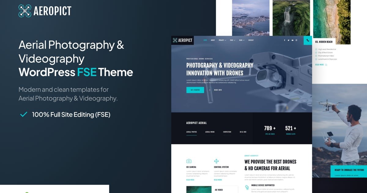 Aeropict is a modern and clean design WordPress theme built especially for Drone Aerial Photography and Videography, as well as it fits perfectly for Film Maker, Movie Studio, Production House, Videography, Photography, Creative Agency, and any related business. Fully compatible with the WordPress block editor, Aeropict makes customization effortless and provides all the essential tools to build a website that perfectly represents your business.