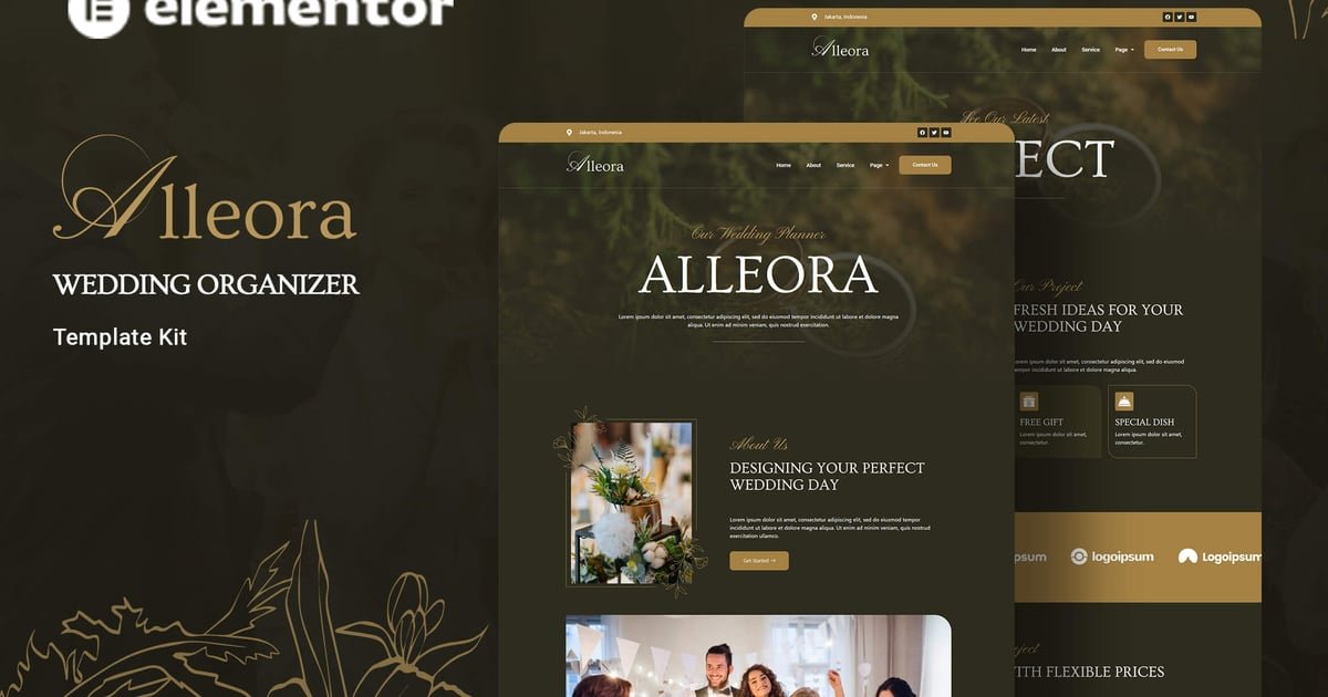 Alleora is an Elementor Template Kit for elegantly displaying your wedding event details, or promoting your event planning services in a modern and artful way.