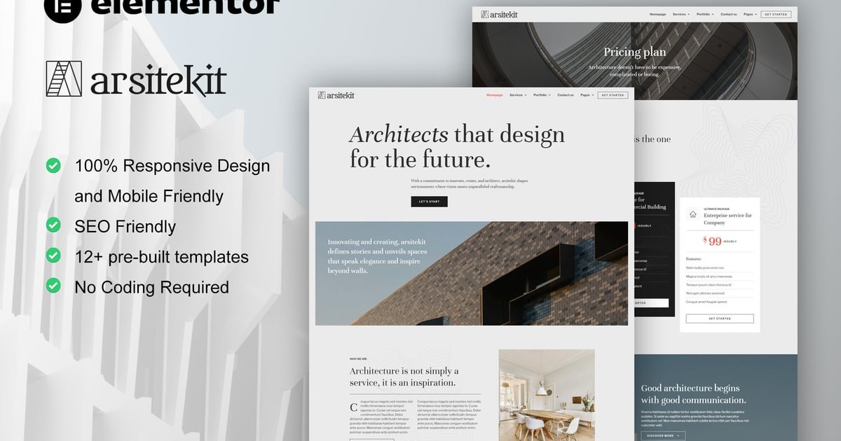 ArsiteKit iss an Elementor Pro Template Kit for building an Architecture, Interior Design & Construction service website in WordPress. This template kit is perfect for architecture, interior designer, construction service, real estate, landscape designer, and also furniture website. It has 12+ pre-built templates with simple design and modern style. You can easily make beautiful website to show your interior design project with this elementor template kit.