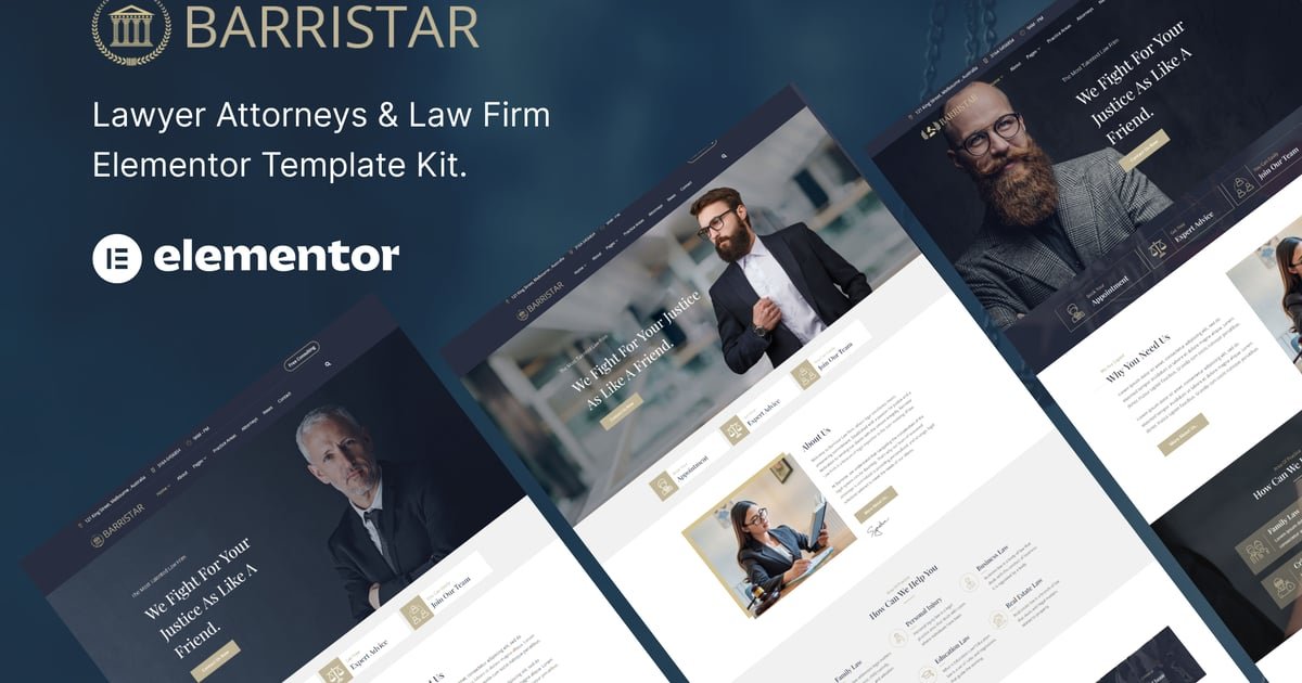 Barristar is Elementor Template Kit for Lawyers Attorneys and Law Firm Website. Created With Elementor Page Builder, you can easily edit or customize it, no coding required, just drag and drop.