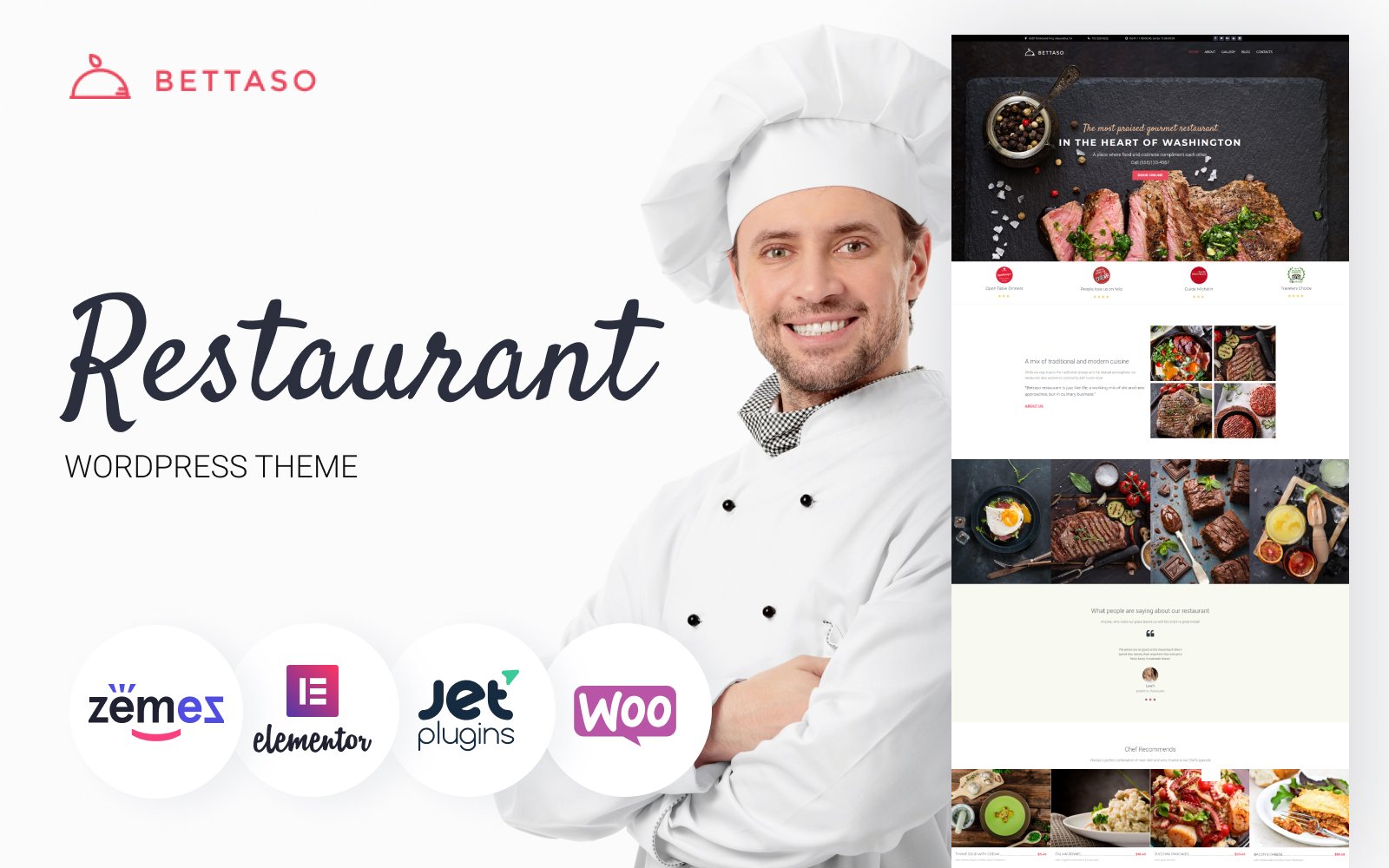 In addition, with the restaurant template WordPress theme, you also get the starter pack of demo content, which includes engaging icons and stunning images, as well as the custom fonts and layouts. The process of customization has never been so easy! The restaurant template is designed with the help of the Elementor plugin and a bunch of powerful add-ons, which makes it easy to edit, add, or replace various elements.