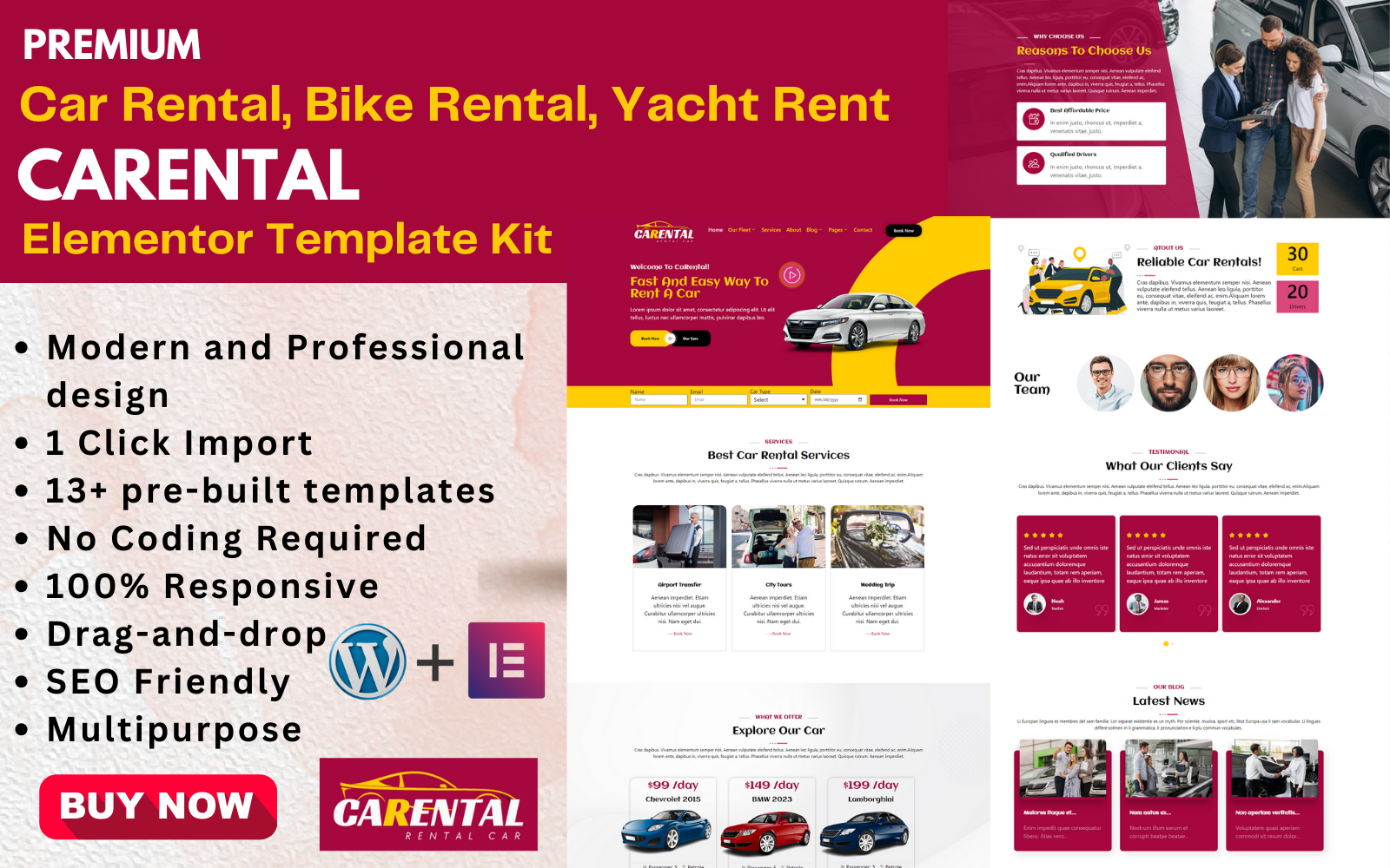 Carental, an Elementor Template Kit, is tailored for WordPress to revolutionize your car rental, bike rental, or yacht rent business. It guarantees a streamlined, customer-centric experience for both rental providers and clientele.