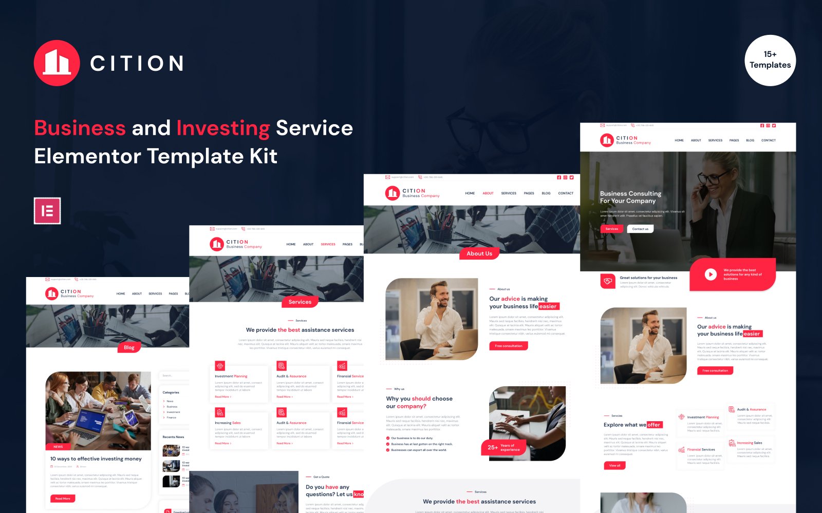 Cition Elementor template kit its perfect choose for specifically like Business, Finance or Investing Company. The kit contain a variety of customizable templates for pages such homepage, about us and more. Also include really good pre-designed blocks and section for example: contact form, tabs or newsletter. All are fully responsive and made in modern way.