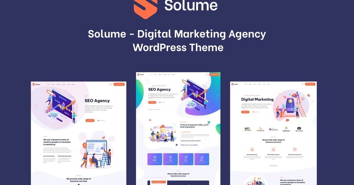 Solume is a robust Digital Marketing Agency WordPress Theme. It gives you the full ability to create modern business websites across a variety of possible fields, industries, businesses, both personal and professional usages.
