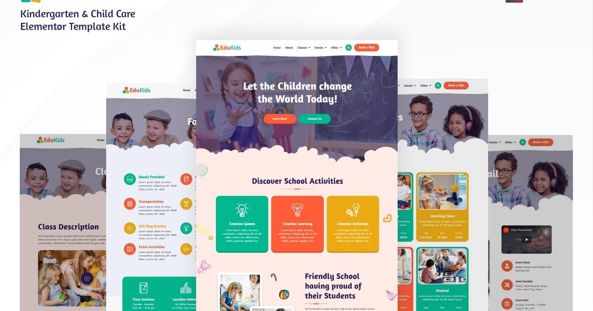 Edukids – A Kindergarten & Child Care Elementor Template Kit created especially to build versatile sites such as kindergarten, child education, playgroup, children day care, children’s service provider and all other child education websites and businesses without a single line of coding!