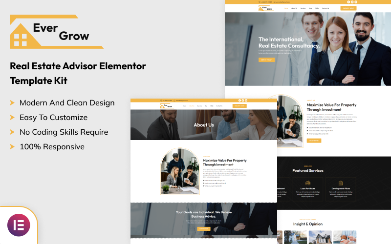 Ever Grow – Real Estate Advisor Elementor Template Kit, a visually exceptional website for the real estate advisor or Business consulting. In this powerful template kit with a beautiful homepage, you get more than eight inner pages. Every Grow is built with Elementor free plugin so no need to purchase any kind of premium plugin to set up this template kit. To customize ever grow template kit you don’t have to need knowledge about any kind of coding.
