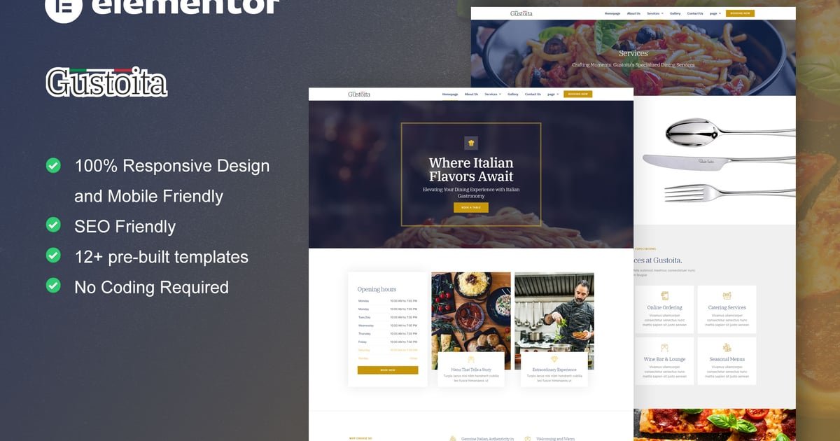 Gustoita – Italian Restaurant Elementor Template Kit