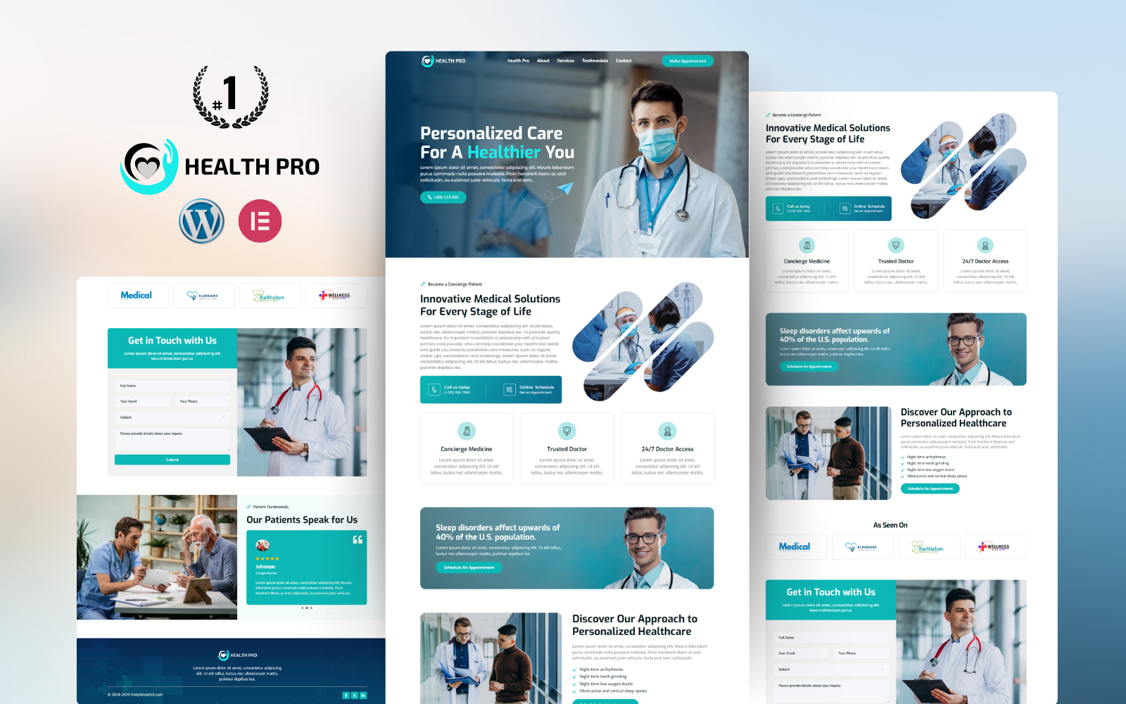 Introducing HealthPro – Medical & Healthcare Landing Page Elementor Template, a powerful, fully responsive template designed for medical professionals, healthcare services, clinics, and wellness centers. Built with Elementor Free Version, this template offers an easy, no-code solution to create a professional and conversion-focused landing page for your healthcare business.