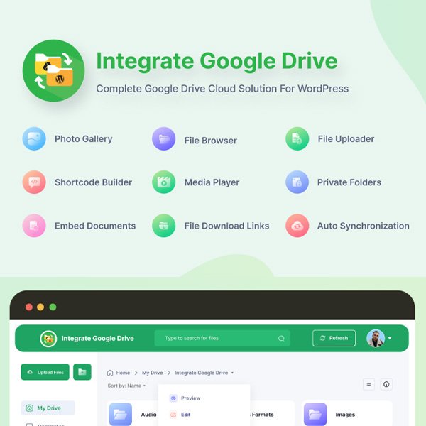 Integrate Google Drive Pro by SoftLab is an advanced plugin for WordPress that offers extensive functionality for integrating Google Drive files directly into a website. This tool enables website administrators to manage, organize, and display Google Drive files seamlessly, improving both backend management and the visitor experience.
