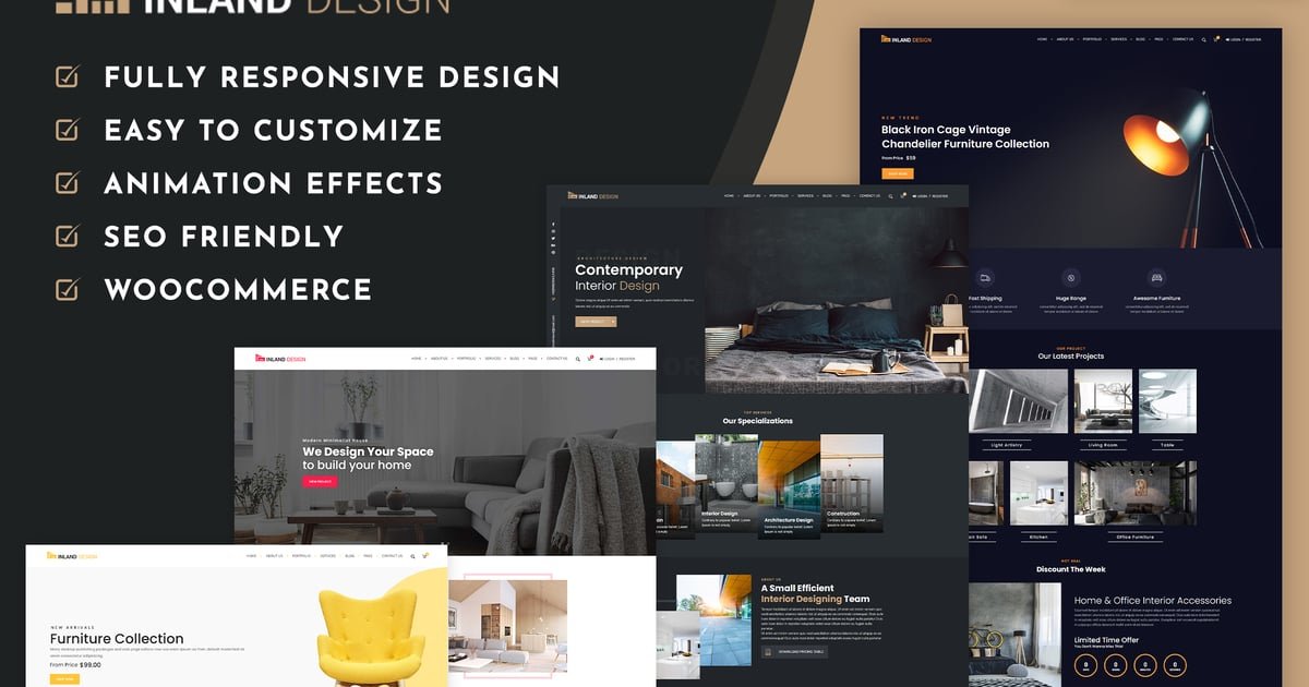 Interior Design WordPress Theme is a Top-Notch WordPress theme that is designed with the utmost creativity. This theme specially design for Interior Design, Dining Room, Exterior Design, Kitchen Design, Living Room Design, Master Bedroom Design, Residential Design, Furniture Design, Office Design, Commercial Design, Hospital Design, Cottage, Architecture, Contractor, Construction, Building, Industrial, Industry & Manufacturing, Factory, Gardening, Lawn & Landscaping, Staging Website, Construction & Business, etc. This is an awe-inspiring theme that has a one-in-class format. You cannot really find another WordPress theme as Interior Design WordPress Theme. It is designed very neat and clean, and 100% responsive.
