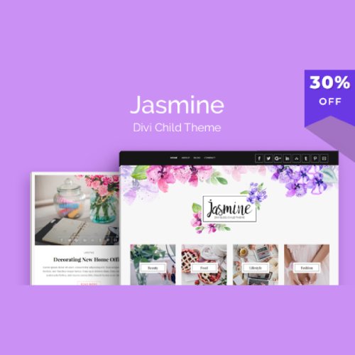 Robust and feature-rich, Jasmine is a stunning Divi child theme that is perfect for lady bloggers looking to start sharing their voice with the world. Beautifully designed, Jasmine brings together vibrant watercolor illustrations, brush script headings, elegant font pairings and subtle blush pink/orange/salmon color accents, to communicate an extra special feminine feel.
