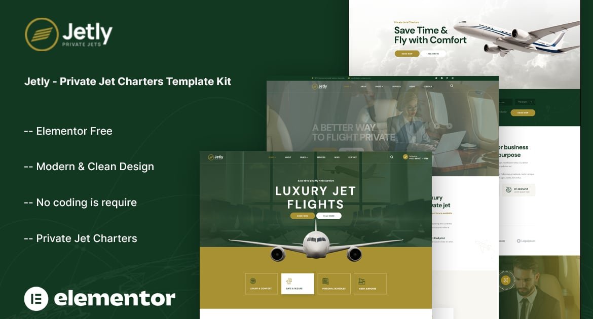 Jetly is an Elementor Template Kit specially designed for aviation, airline company, airplane charter, private charter, aircraft flight, airport, flight school, jet service, air taxi, business transfer and pilot school. This is a Template Kit that uses Elementor to create pages, it’s used with Theme Hello. All are free. User-friendly interface and powerful customizations, so you can easily tailor it to your brand and services