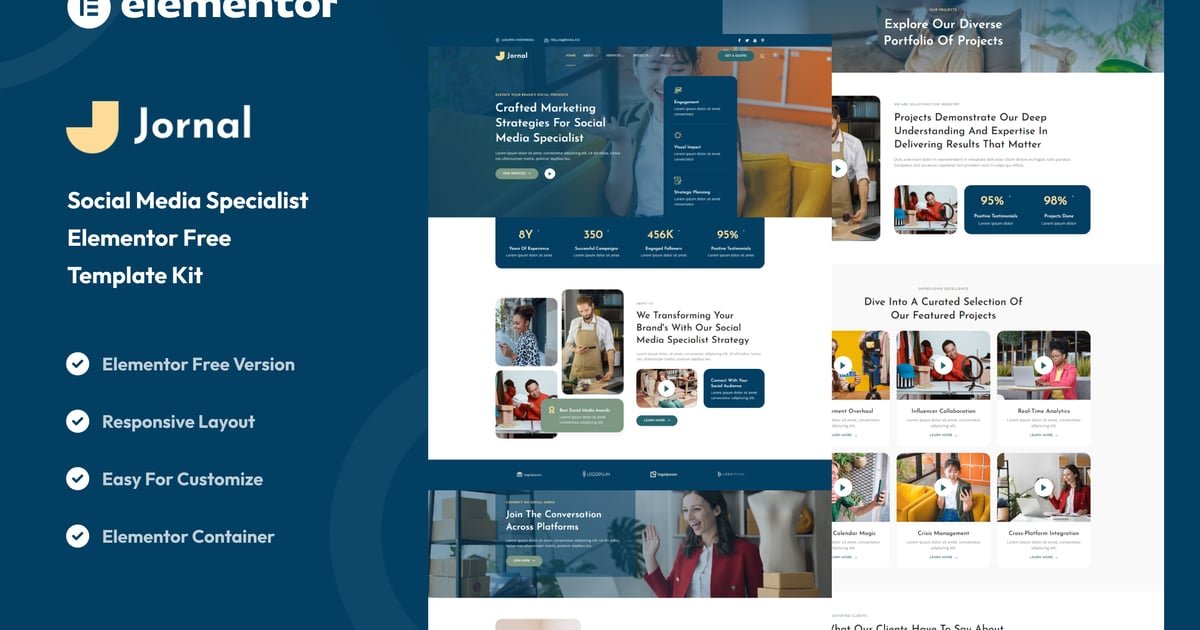 No coding skills required! Jornal – Social Media Specialist Elementor Template Kit is built with Elementor, making customization a breeze. Effortlessly modify the layout, colors, and content to suit your brand identity.