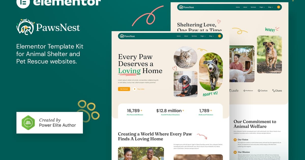 PawsNest is a modern and clean Elementor Template Kit tailored for Animal