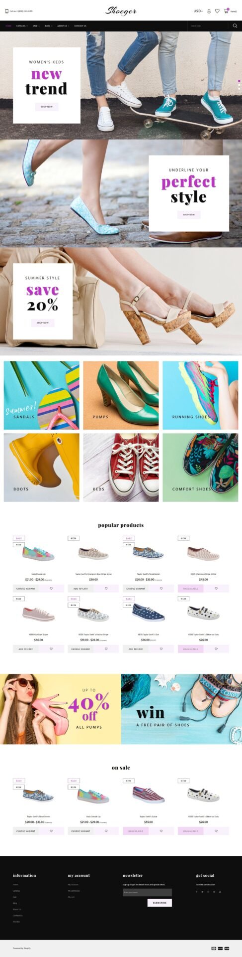 This is Footwear Shop Shopify template with On-line chat functionality