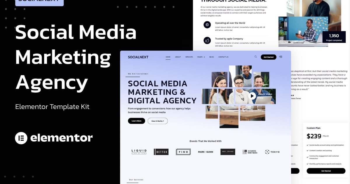 Socialnext is elementor template kit for quickly and easily creating websites for any Business, Marketing & Agency using the Elementor Page Builder plugin for WordPress. This template has cool layout with modern style design, and professional look. It has 10+ pre built template with elegant, simple, and modern design style. Just drag and drop, no coding required.