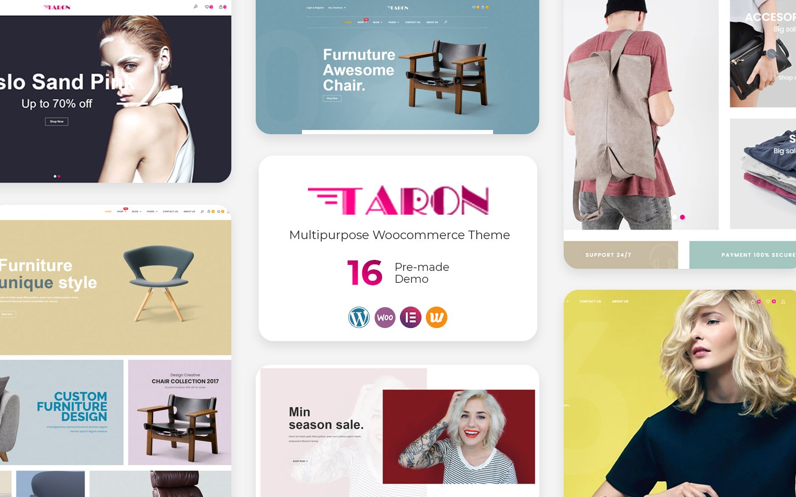 Taron Theme is a multipurpose WooCommerce WordPress theme designed for fashion, furniture, electronics, accessories, beauty store, and all kinds of marketplace business. This theme is fully responsive, it looks stunning on all types of screens and devices.