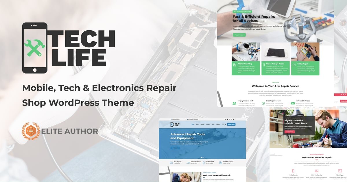 Tech Life is a premium niche WordPress theme designed especially for mobile phone and tablet repair shops, computer and laptop repair businesses, camera repair shops, printer repair shops, television repair, stereo system repairs, electronic stores and any other technology repair shops and stores.
