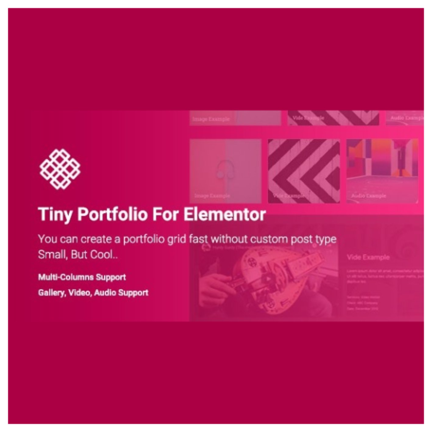 Tiny Portfolio Addon plugin offers a Portfolio Grid Widget for Elementor page builder. You can create a portfolio grid with detail content popup, no need to use the portfolio post type, small but cool.