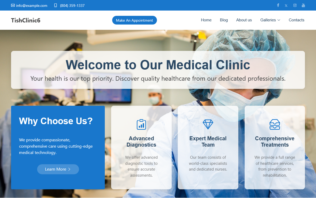 TishClinic6 is a WordPress theme specifically designed for medical clinic websites. Whether you run a general practice, specialized clinic, or multi-service healthcare facility, this theme offers everything you need to build a stunning, functional, and user-friendly website. TishClinic6 leverages the power of Gutenberg blocks, providing unparalleled customization and flexibility while remaining intuitive for users of all experience levels.