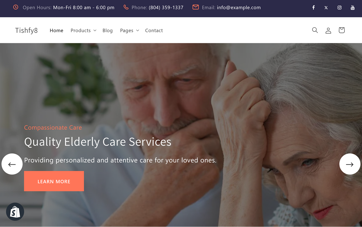 As the elderly care industry continues to grow, it’s crucial to have an online store that reflects the compassion and professionalism that your customers expect. Tishfy8 caters specifically to elderly care businesses by offering sections that focus on building trust and credibility with your customers. Whether you’re a small business or a larger chain offering senior care products, Tishfy8 will help you establish a strong online presence and provide a smooth, enjoyable shopping experience for all visitors.