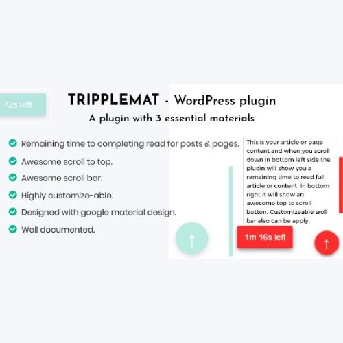Tripplemat WordPress Plugin is a very simple and light weight plugin what is combined with three essential plugins for your WordPress site. It’s designed with google material design what is looks very modern. It will allow you to show remaining time with a nice bar to read a post or page. You can also show a scroll to top circle in your site. With this plugin another option is to change scroll bar of your browser when anyone are visiting your site. It’s very easy to use and have lot’s of multiple features for every single functions. We will recommend you to use this plugin for your WordPress website.