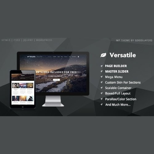 Versatile is a clean responsive multi-purpose Wordpress theme. The theme can be fully customized to be used in many fields such as Lawyer, Blog, School, Creative agencies, Restaurant, Church, Online shop, etc. The theme also come with GoodLayers page builder which provides tons of feature. You can have section with custom skin, parallax section with custom speed.. all is done by dragdrop ability. We also provide $23 value Master Slider. This slider will blow your mind and you will forget every slider that you used before. It allows you to have, for example, video as background, slider with vertical thumbnail, slider with mobile mockup, carousel slider or even showcase slider and so much more. The slider also provide Full-screen slider, Full-width slider and Boxed slider.