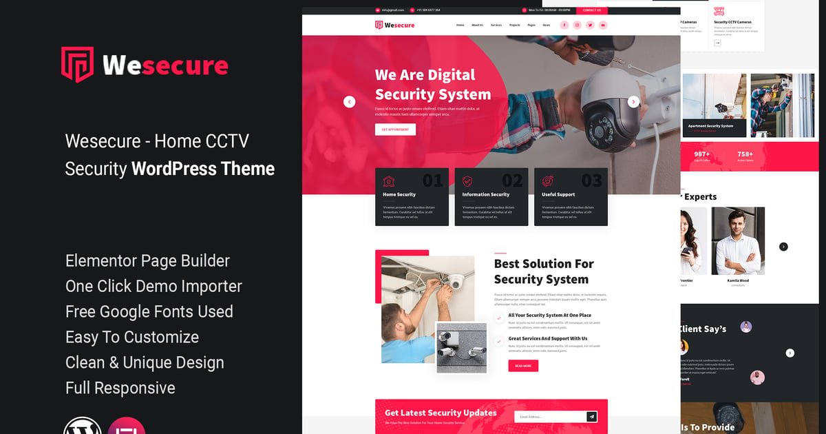 Wesecure – Home CCTV Security WordPress Theme. especially Home Security, Security Firms, Security System Providers, Security Companies, Security Installation Service, CCTV and Security Services websites.