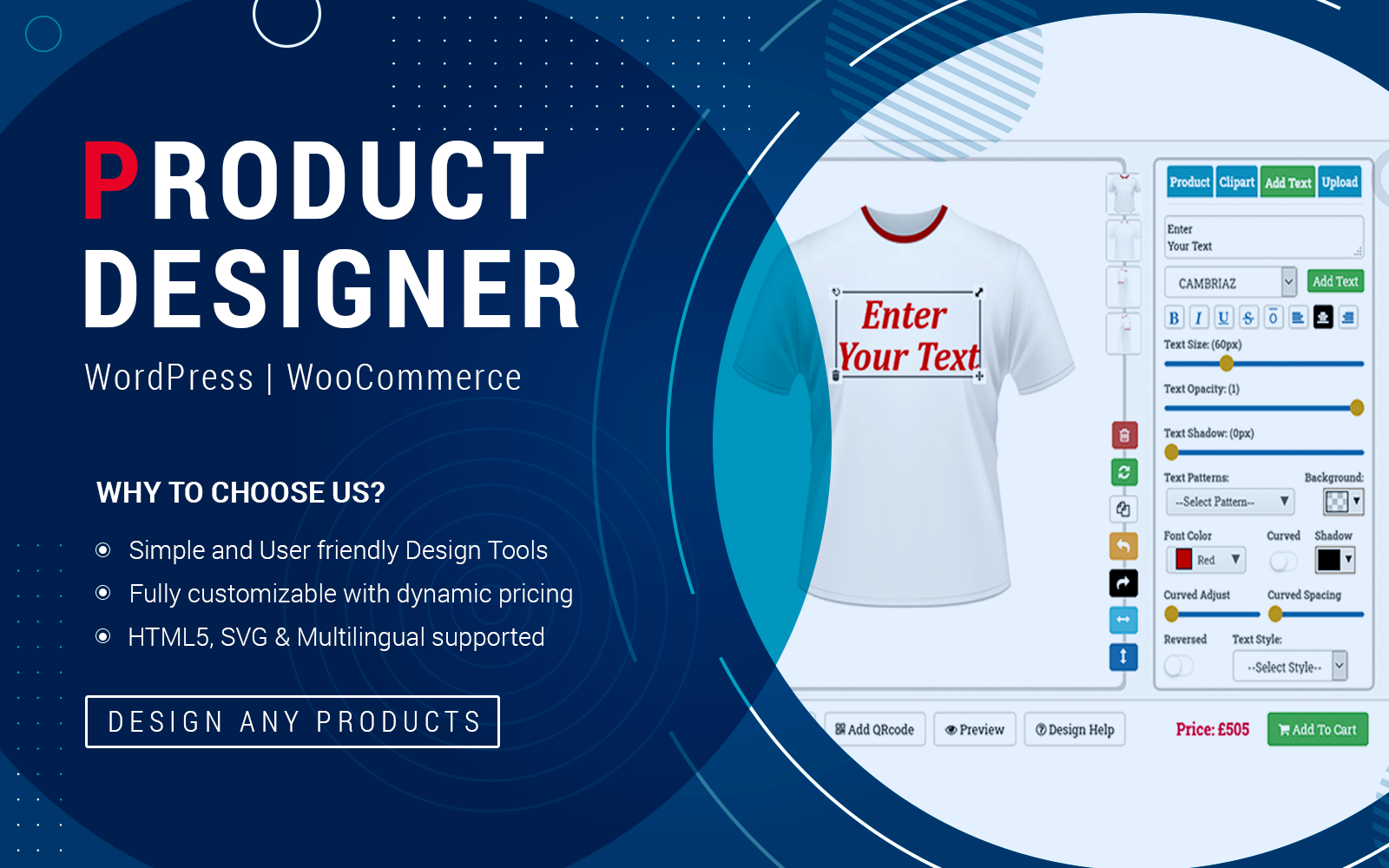 Products Designer Tool is a very useful tool for designing any product of Woo-commerce.