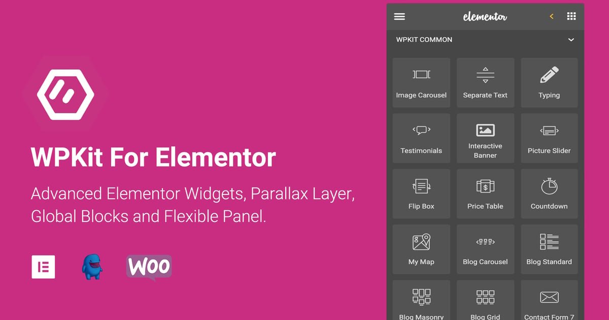 WPKit For Elementor plugin is a premium Elementor Addon which mainly offers many advance Elementor widgets, parallax layer, flexible panel and global block module. it’s also compatible with WooCommerce and Easy Digital Downloads, such as several product layouts, cart button, and product search widget. It works with the free version of Elementor, no Pro version required!
