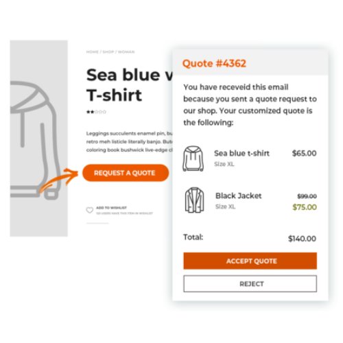 Show an “Ask for a quote” button on the cart page to allow customers to convert their cart content into a quote request. The button will open a modal window with the same form shown on the request a quote page