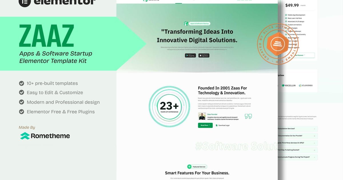 Zaas is an Elementor Template Kit specially designed for Apps & Software Starup websites!