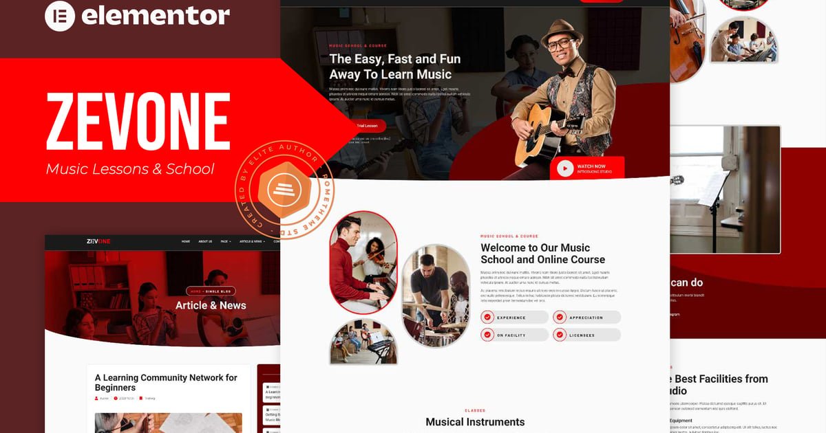Zevone is an Elementor Template Kit specially designed for Music Lessons & School!